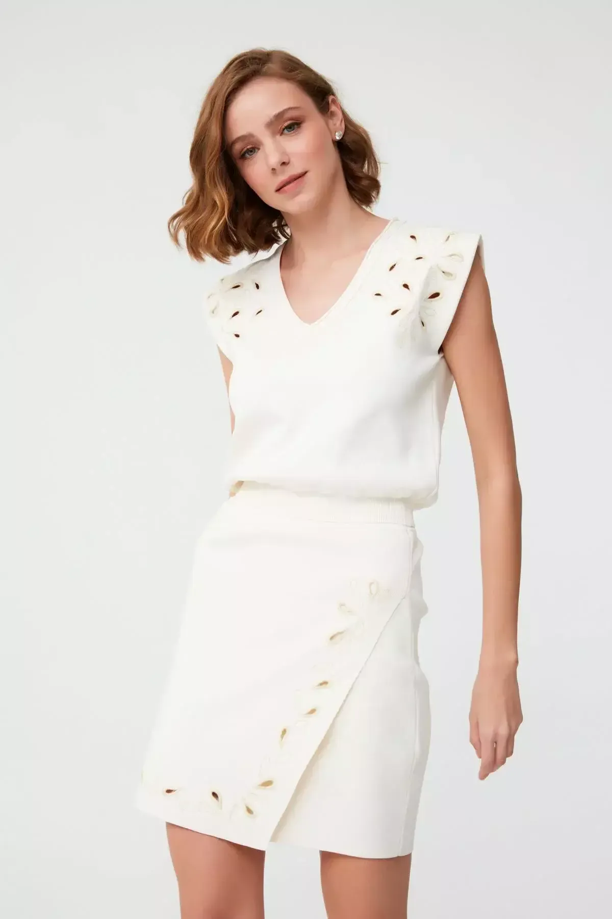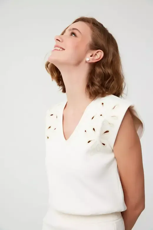 Lazer Kesim Ekru Bluz	 Teklif Bid Ürünü