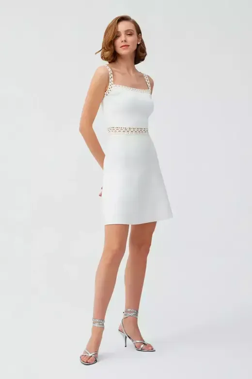 Apple Kloş Beyaz Mini Elbise